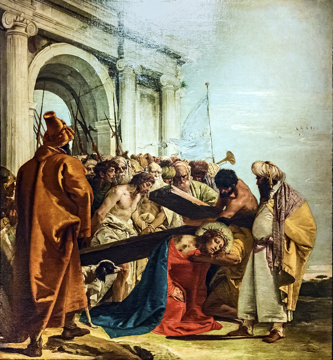 Biała suknia i błękitny płaszcz: Kolory te symbolizują czystość (biel) i niebo (błękit), nawiązując do jej boskiej łaski.