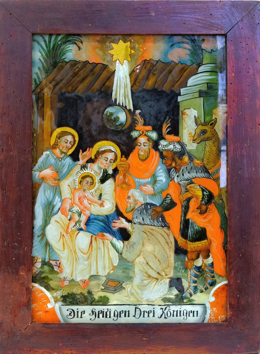 Obraz "Pokłon Trzech Króli" z Raciborza to cenny zabytek z XIX wieku, malowany na odwrotnej stronie szkła (temperami) i przechowywany w raciborskim muzeum, przedstawiający scenę pokłonu Mędrców przed Dzieciątkiem, typowo ukazując scenę szopki i króla w różnym wieku, często czarnoskórego Kacpra. Dzieło, oprawione w prostą drewnianą ramę jest doskonałym przykładem sztuki ludowej z terenu Śląska.