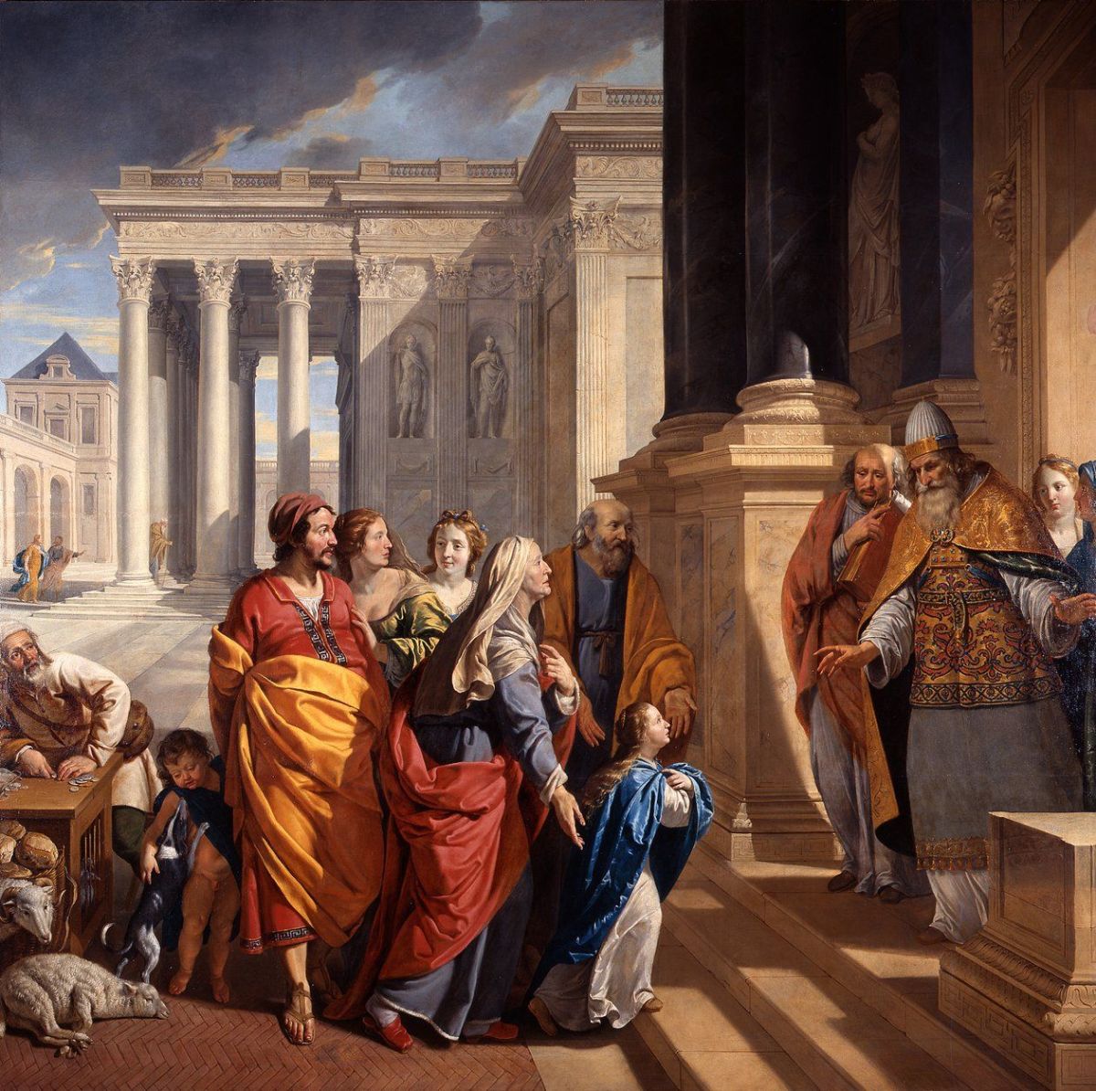 Temat Ofiarowania Najświętszej Maryi Panny, oparty na apokryficznej Protoewangelii Jakuba, pojawiał się w malarstwie od średniowiecza do baroku. Przedstawia on moment, w którym rodzice Maryi, Joachim i Anna, wprowadzają ją do świątyni w Jerozolimie, aby poświęcić ją na służbę Bogu.